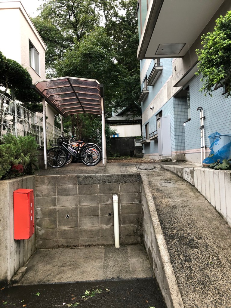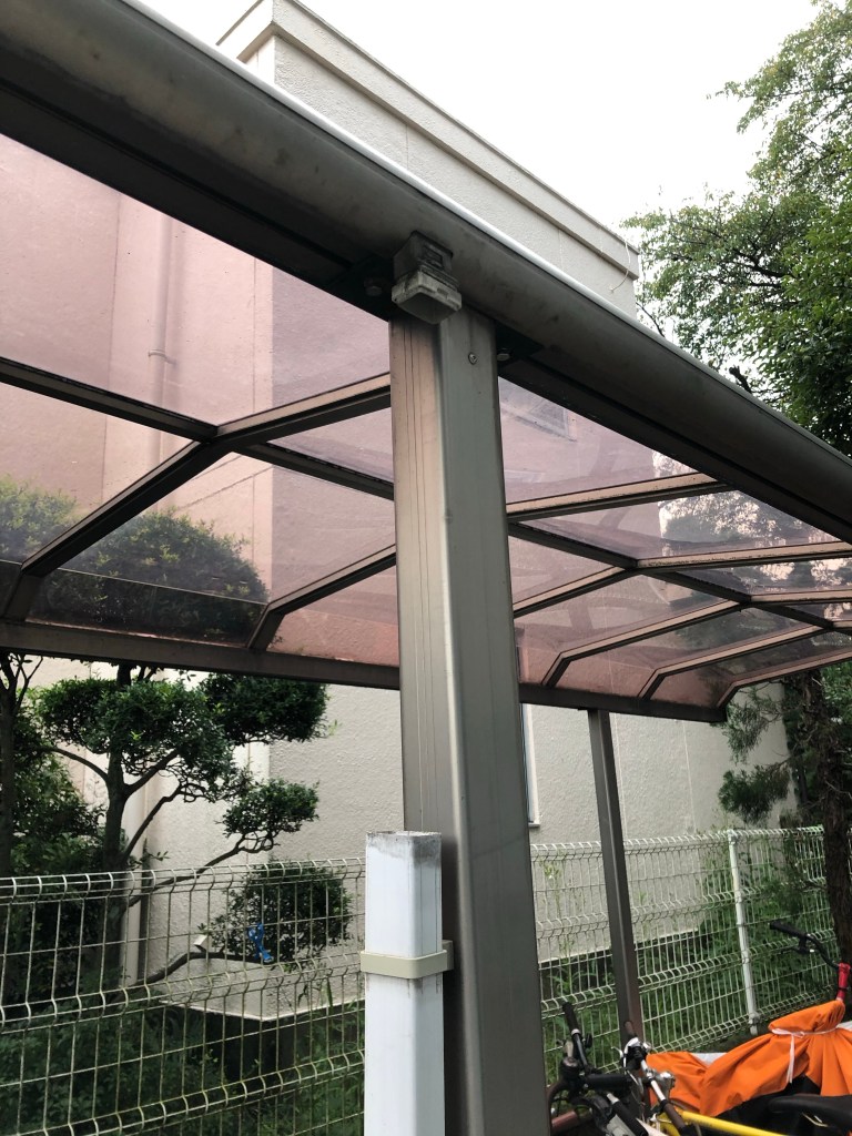壊れた自転車置き場の雨樋をDIYで修理しようと思います。